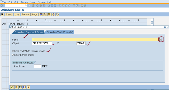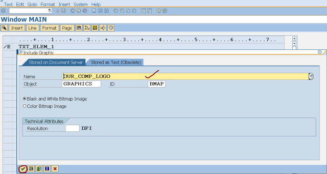 Step9. Provide a text element TXT_ELEM_1 and from the menu select Insert->graphics.