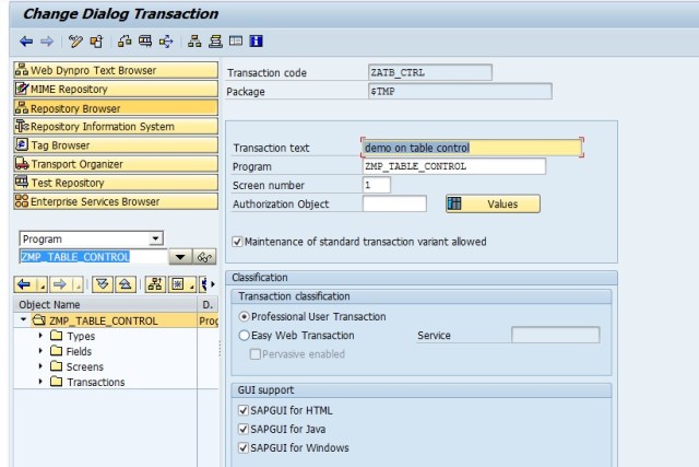 Step 11. Lets create a T-Code for the Module pool program.