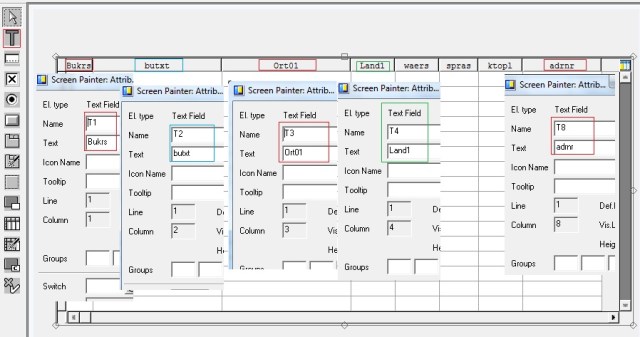 Step 4. Select the Table Control Element from the left column of the screen painter, Drag and Drop it on the screen. Adjust the Height and Width as per required. Now Double click on it and provide the name of the