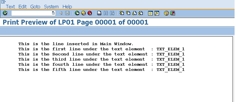 Step12. Go to the program and execute it . Here we have called only text element TXT_ELEM_1.