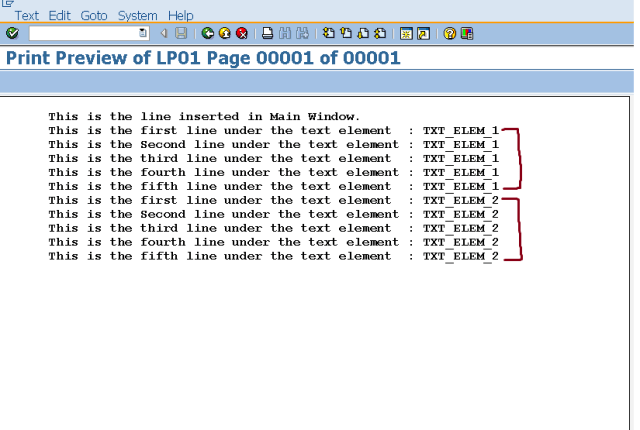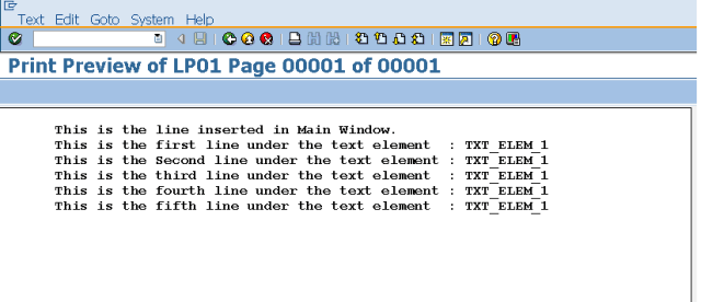 Step13. We have the below output. The O/P only contains the lines under text element TXT_ELEM_1.