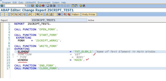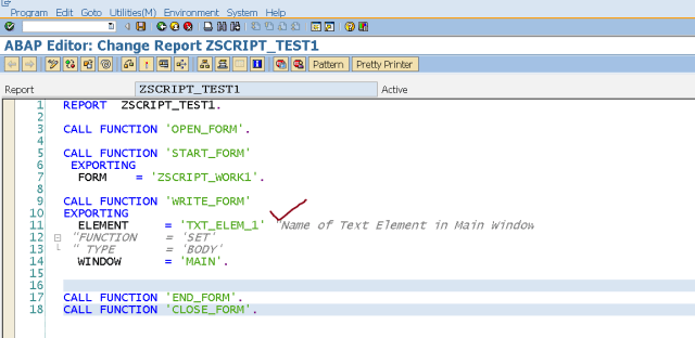 Step8. Now in the WRITE_FORM pass the element name : TXT_ELEM_1 and execute the program.