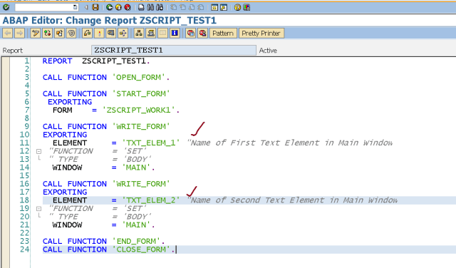 Step14. In the driver program, Call the FM ‘WRITE_FORM’ again and pass the text element ‘TXT_ELEM_2’ . Activate the program and execute it.
