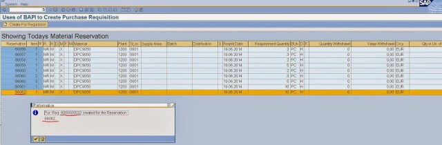 Step12. Below report creates the Purchase requisition for the selected Reservation.