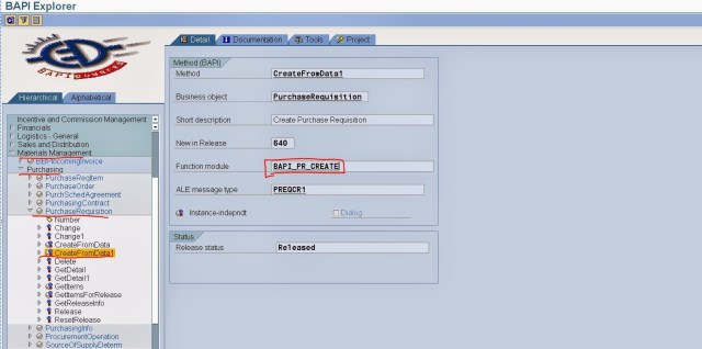 Step10. Lets Automate the process by Using BAPI fm. The Bapi: BAPI_PR_CRETAE can be used to create the bapi in background.