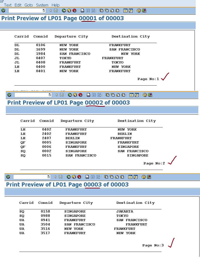 Step6. So we have the below output. The records are span over 3 pages as each page is having a main window height of 5 cm. So the MAIN window spans to multiple pages depending upon the content size