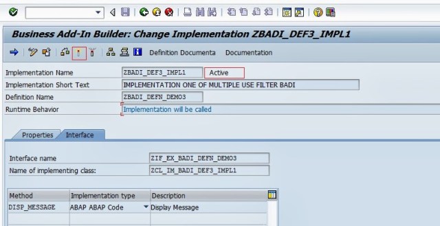 Step11. Activate the implementation. Now up to this point we created a BADI implementation successfully.