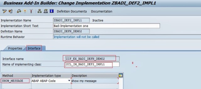 Step4. The system also generate a Interface based on the BADI name.Now double click on the interface name ‘ZIF_EX_BADI_DEFN_DEMO2’.