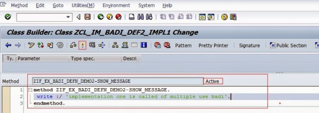 Step10. Activate the implementation. Now up to this point we created a BADI implementation successfully.