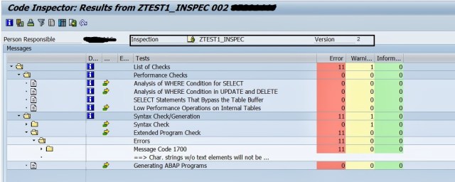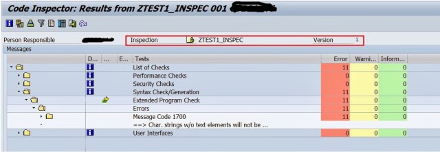 Step7. The Code Inspector Result for the REPORT is displayed as below.