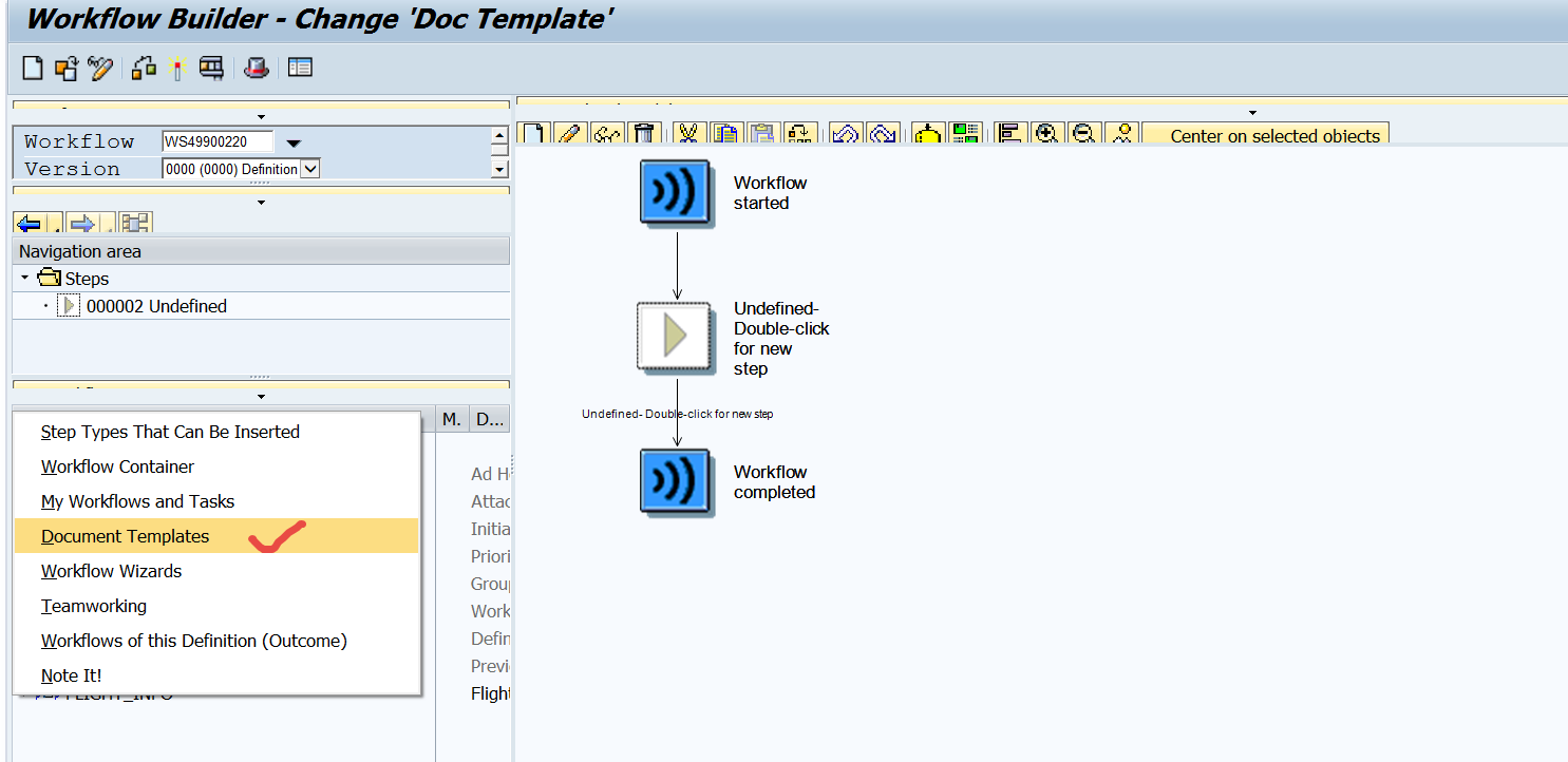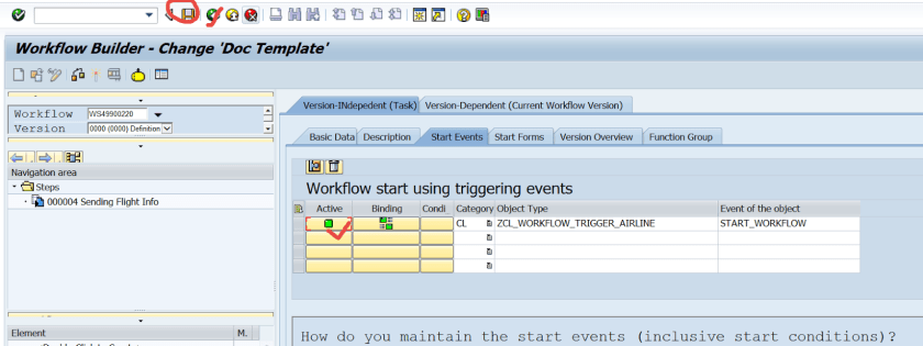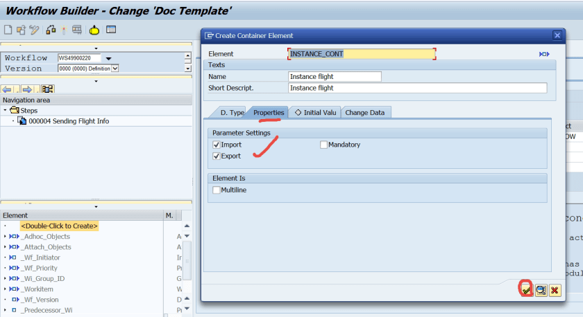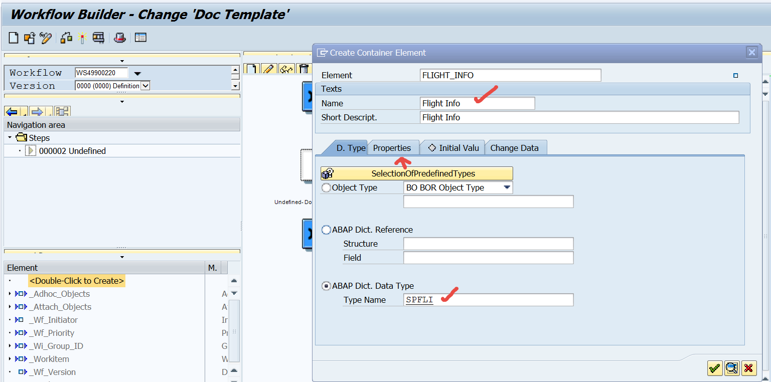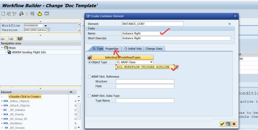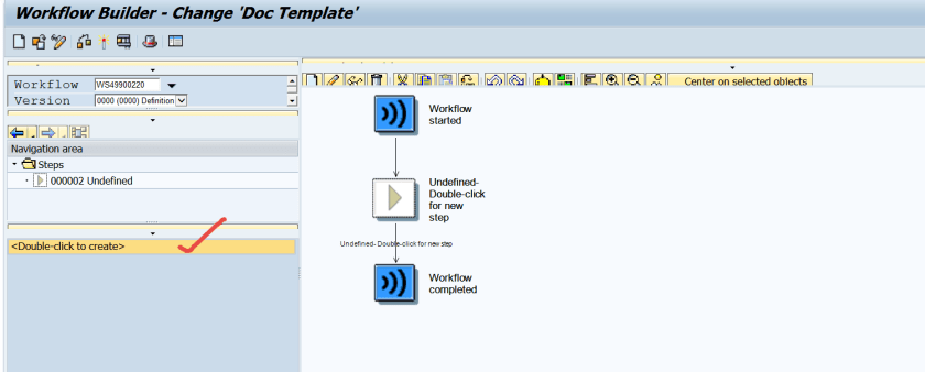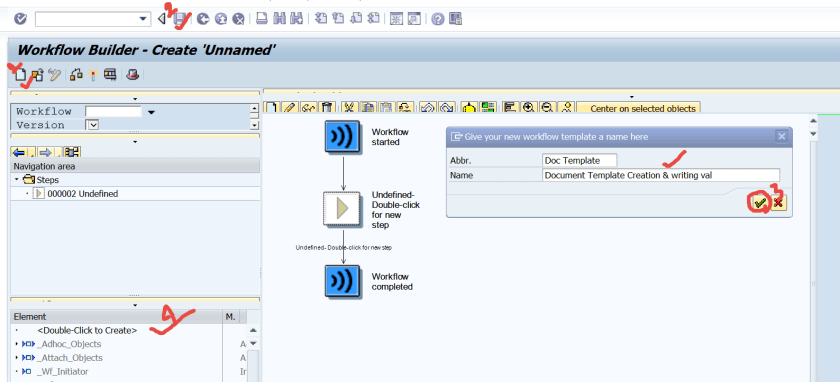 - Go to Tx- SWDD and create a work flow. Save and provide name and description and create two container element as follows.
