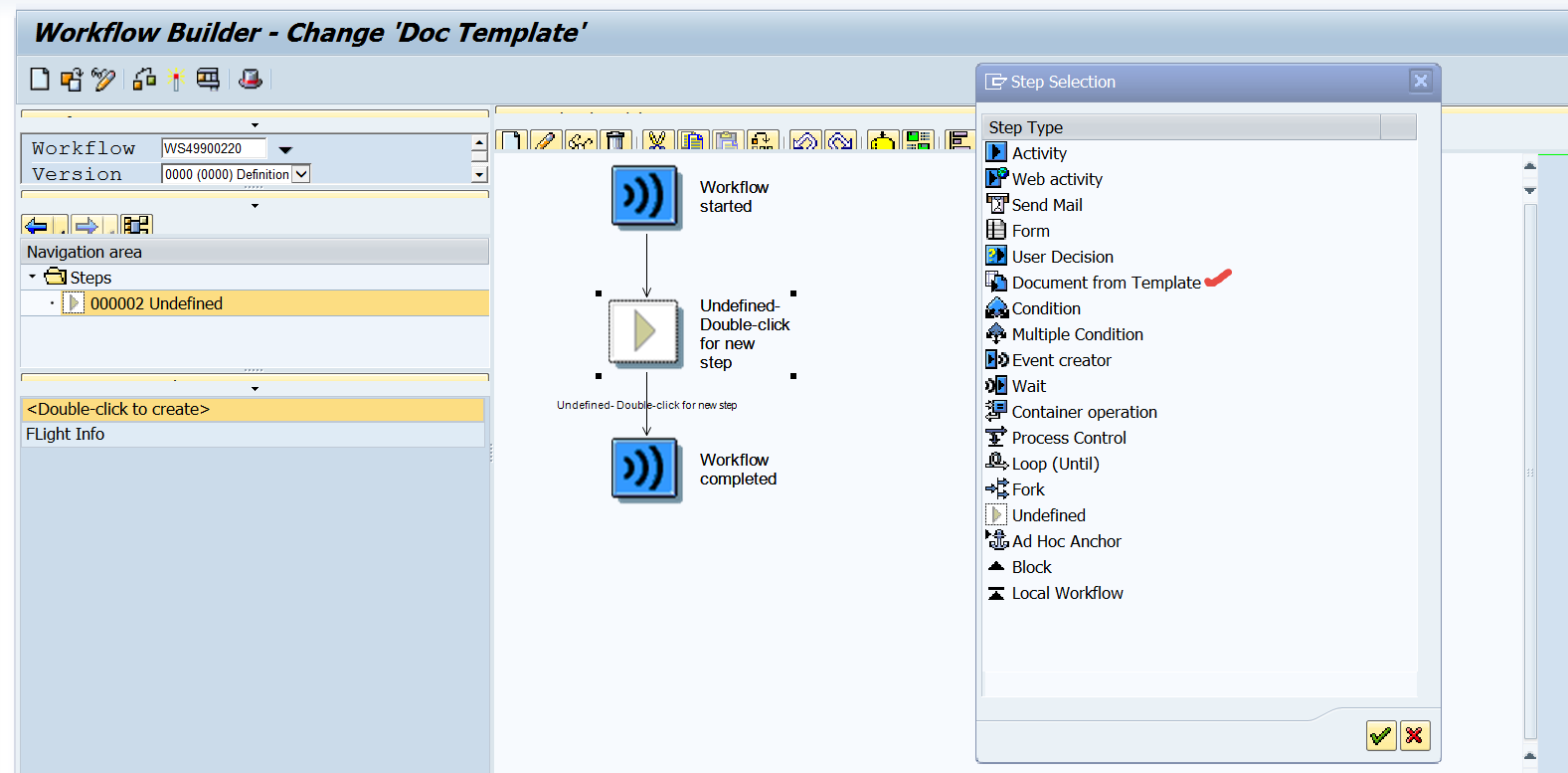 - Provide a step name and attach document template by F4 and provide agent who wil receive this document . Continue.