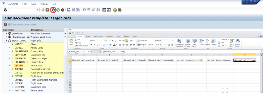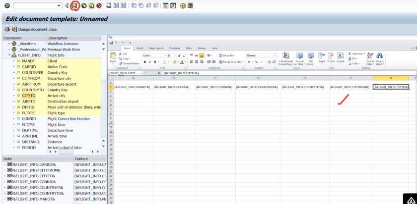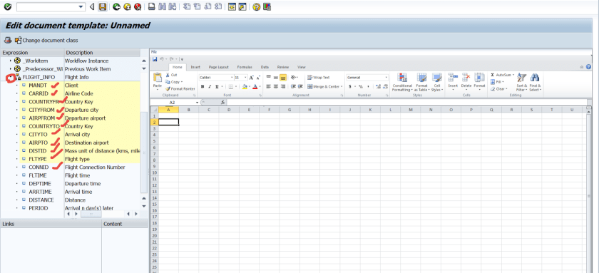 - Select a column on the excel and double click on the field of the container. The links will be created. Similarly double click on the fields that we want to put in the work sheet.
