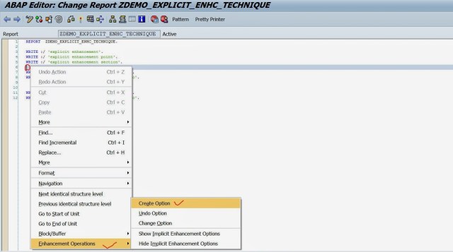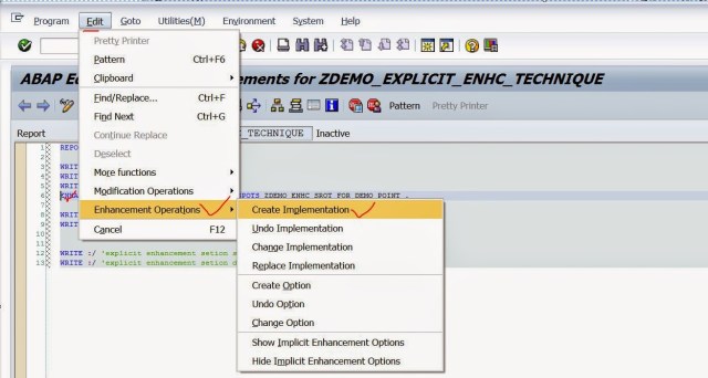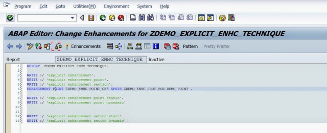 Creating Enhancement point really makes sense to enhance SAP standard program where the business needs some specific functionality that could not be achieved by implicit enhancement technique. In the below demo the explicit enhancement technique is described in a Z program.