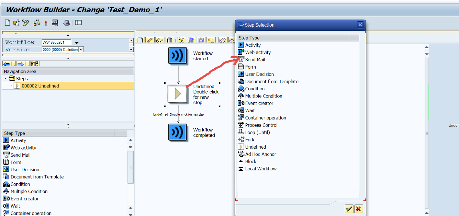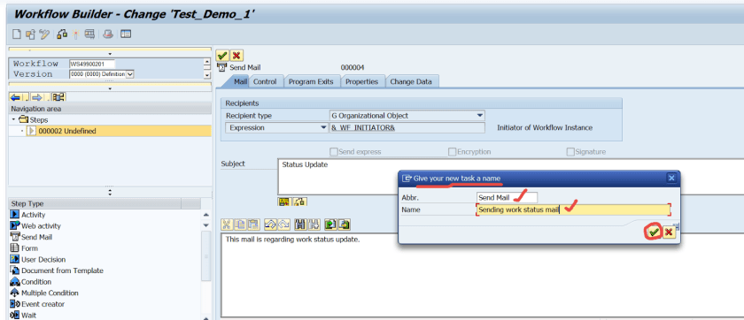 Step8. As send mail is a step in the workflow, provide the step name and description and save in the related package.