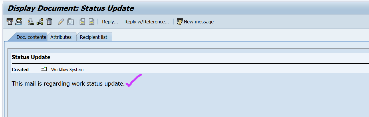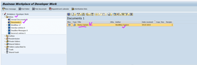 Step16. Go the user Tx- SBWP and in the inbox we can see there is one document. Double click on that to see its body.