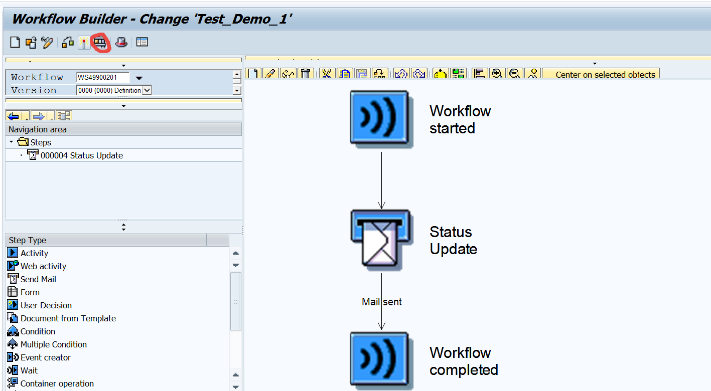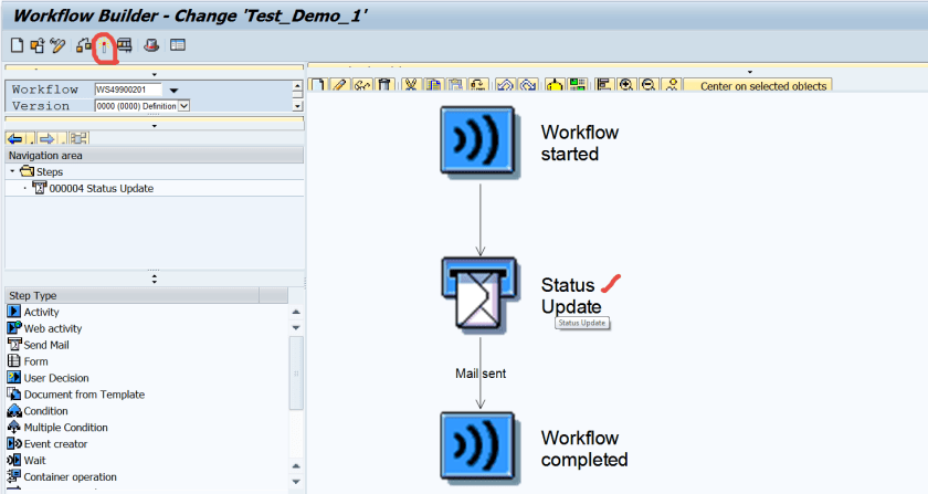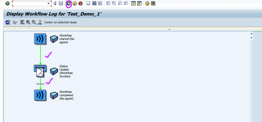 Step15. The green line indicates that, the wf stared and the EMAIL STEP – STATUS UPDATE has been executed and wf has been completed.