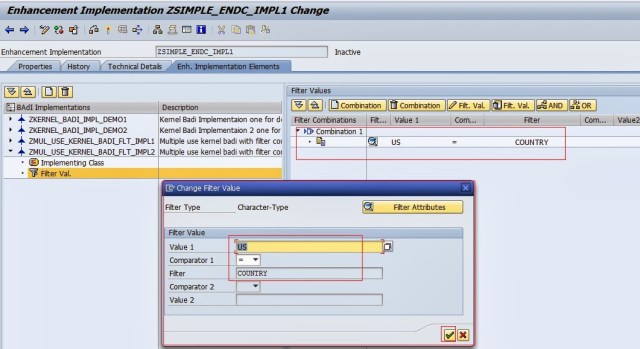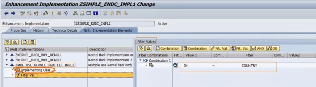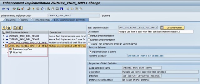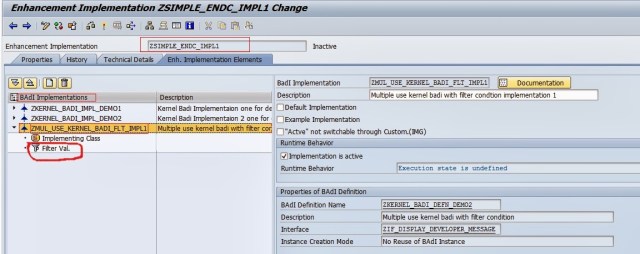 Step15. Now the filter condition for this BADI implementation appears on the Right hand side.