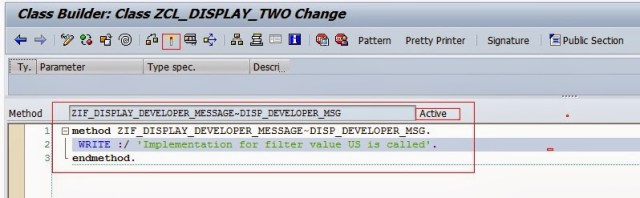 Step26. Now double click on the Implementing class from the left hand side of the BADI implementation and double click on the method name to implement it.