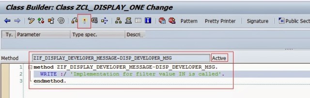 Step16. Now double click on the Implementing class as highlighted on the left hand side of the badi implementation. Now double click on the method of the interface.