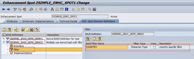 Step7. Now the BADI filter variable ‘country’ is created which appears in the right hand side.
