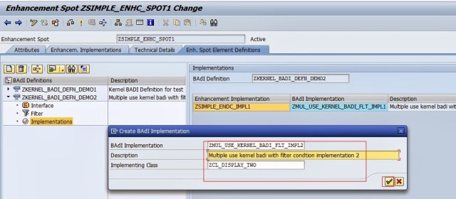 Step19. Now for the BADI ‘ZKERNEL_BADI_DEFN_DEMO2’ one implementation is created.