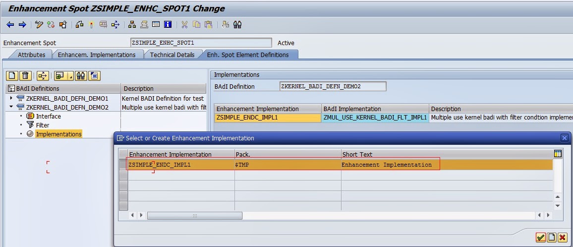Step1. Already we have a Enhancement Spot ‘ZSIMPLE_ENHC_SPOT1’ . Now Click on the Create button(F5) to create a BADI definition.