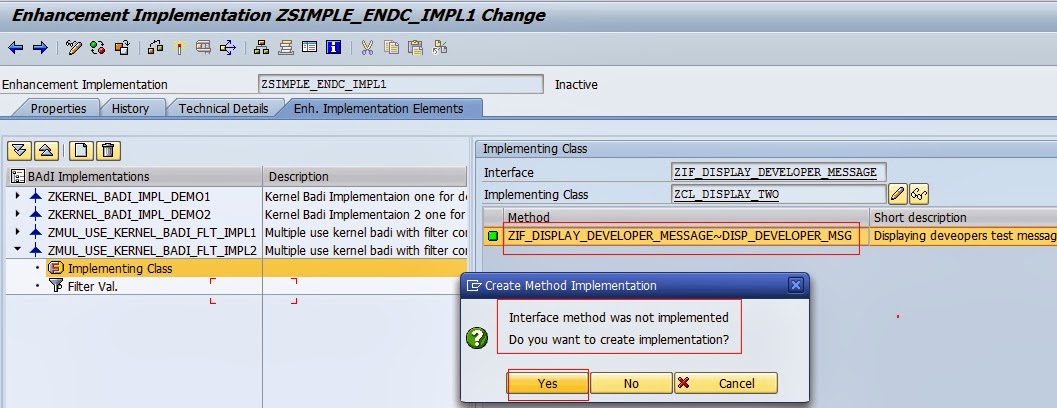 Step19. Now for the BADI ‘ZKERNEL_BADI_DEFN_DEMO2’ one implementation is created.