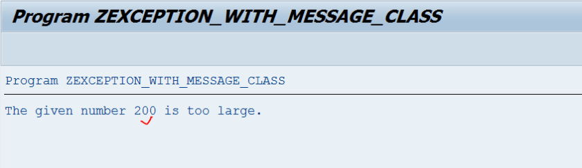 Step19. So here we have the program which Raises the Exception with Exception ID with ZNUMBER_TOO_LARGE. While Raising the Exception we are passing the attribute NUM_LARGE. Execute the program.