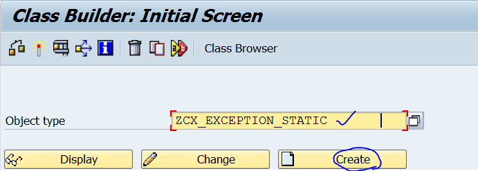 Step2. Go to Tx-SE24 and create an exception class. Provide the class name and select Create.