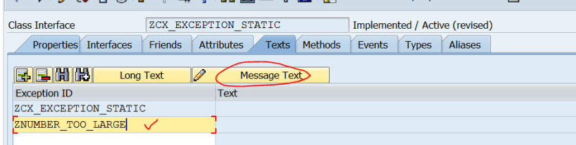 Step10. Now provide a new Exception ID name as ‘ZNUMBER_TOO_LARGE’, then click on the button Message Text.