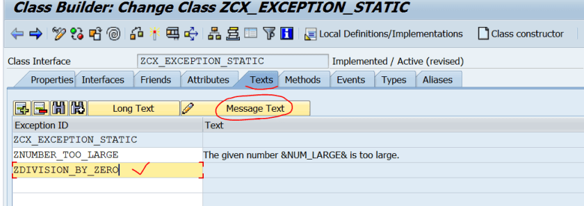 Step16. Under the Text tab define a new Exception ID as ZDIVISION_BY_ZERO and then click on Message Text button.