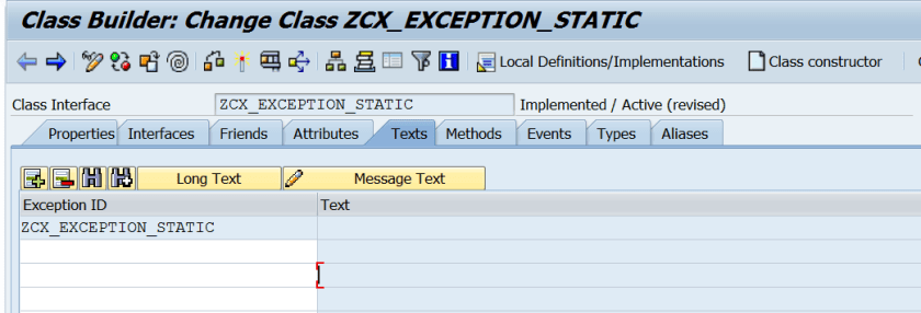 Step6. Only one Exception text ID is automatically created by the system. Now click on methods tab.