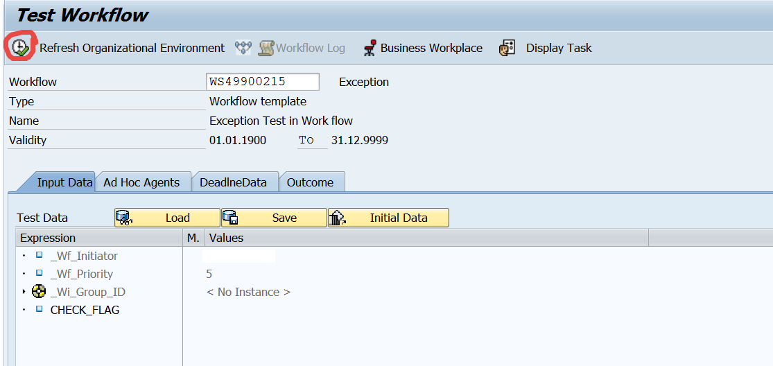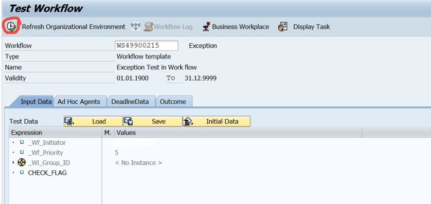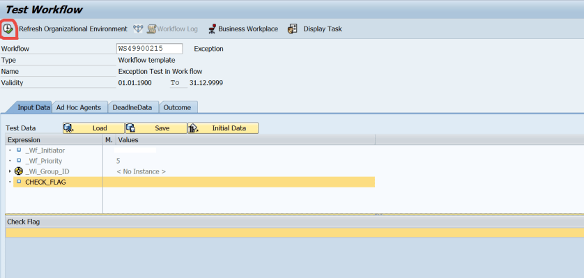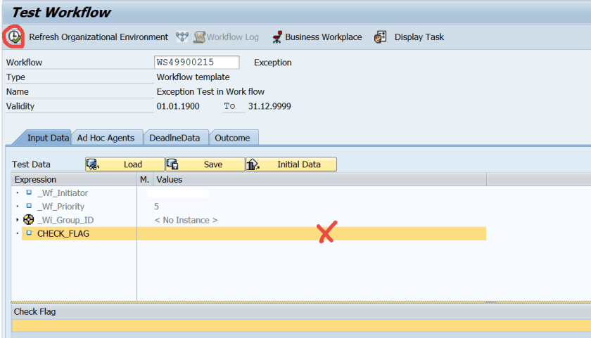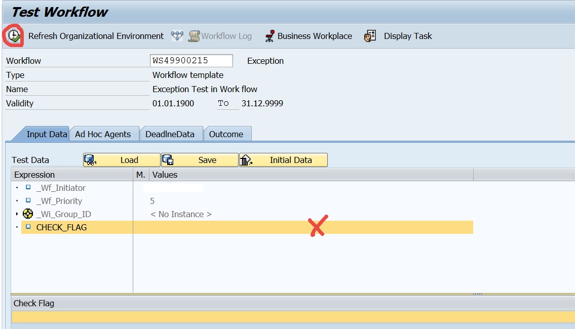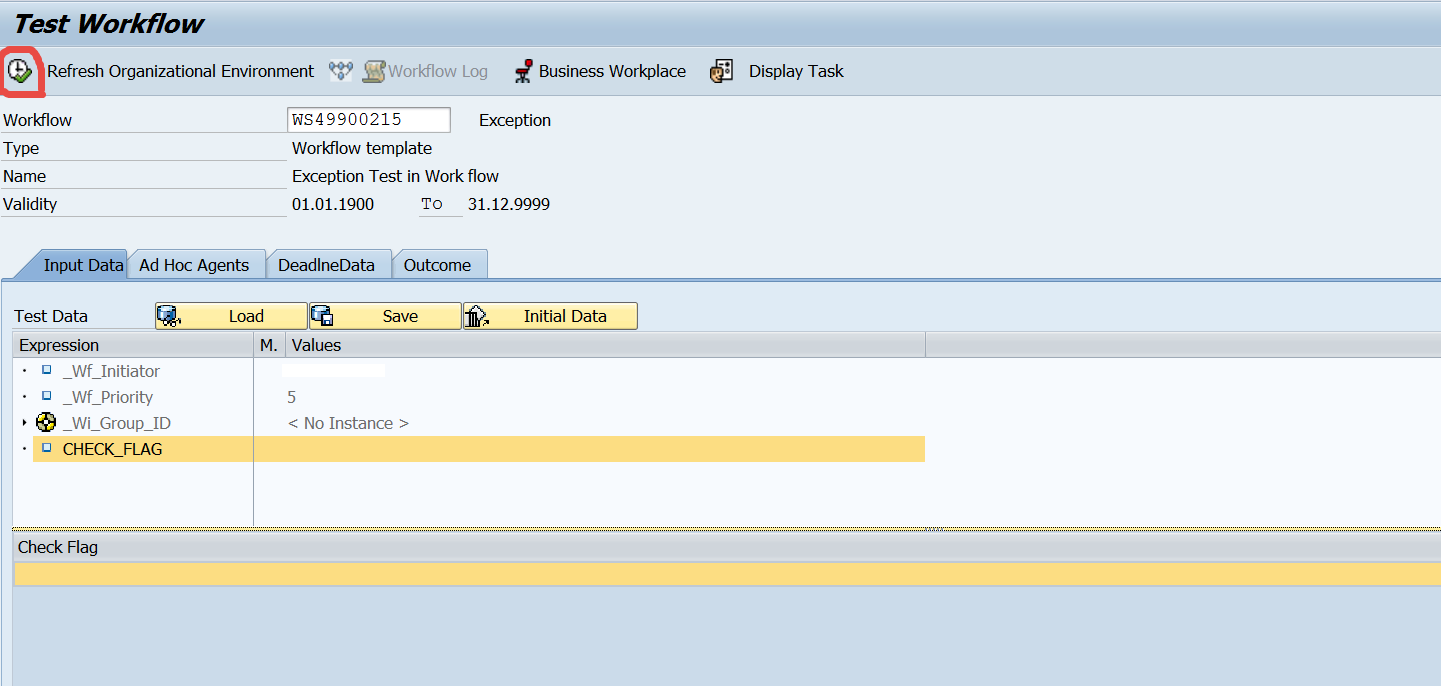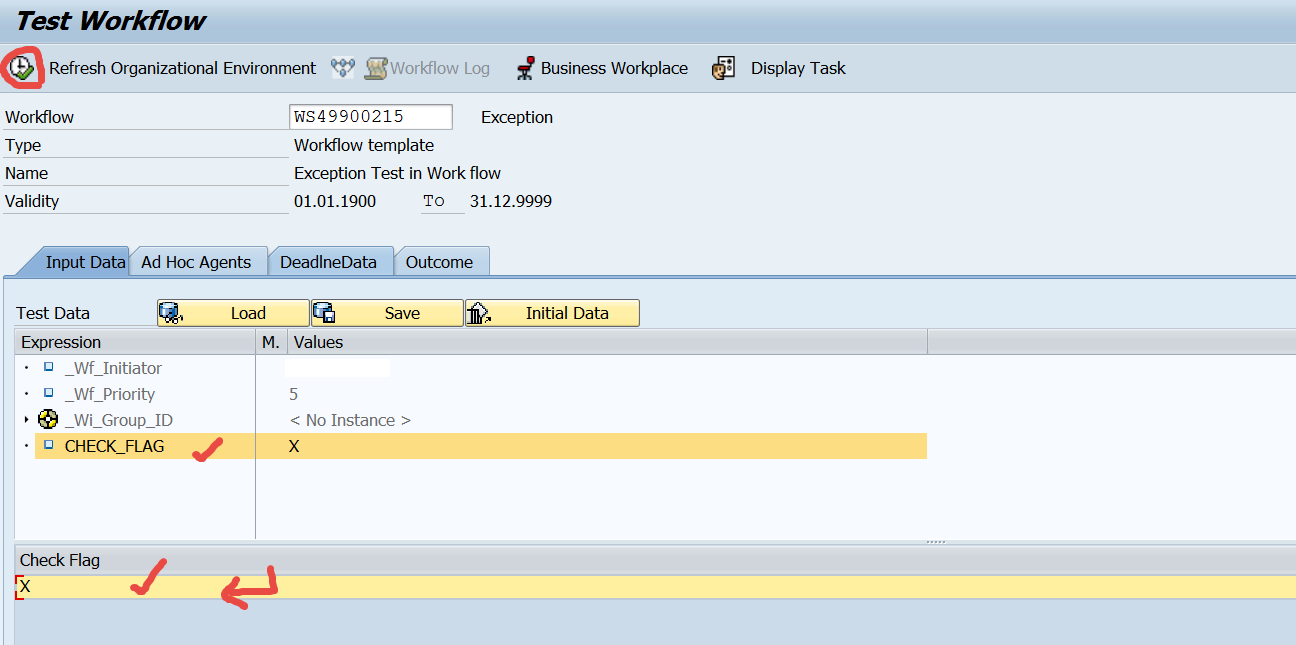 - Go to the Exceptions tab. here already the defined exception NULL_EXCEPTION is present that we have defined in the WF header.