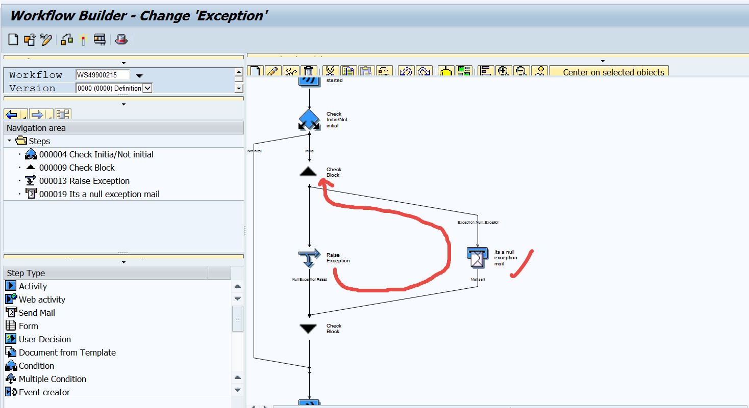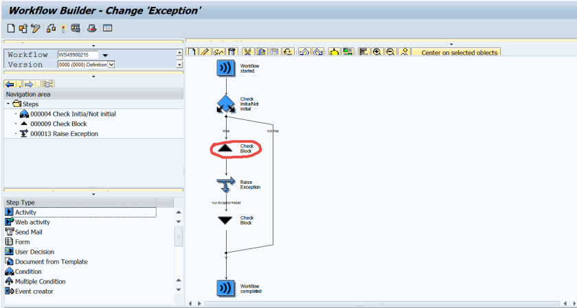 - Now go back to the work flow and we have to catch the exception now in the block it self. Now double click on the block.