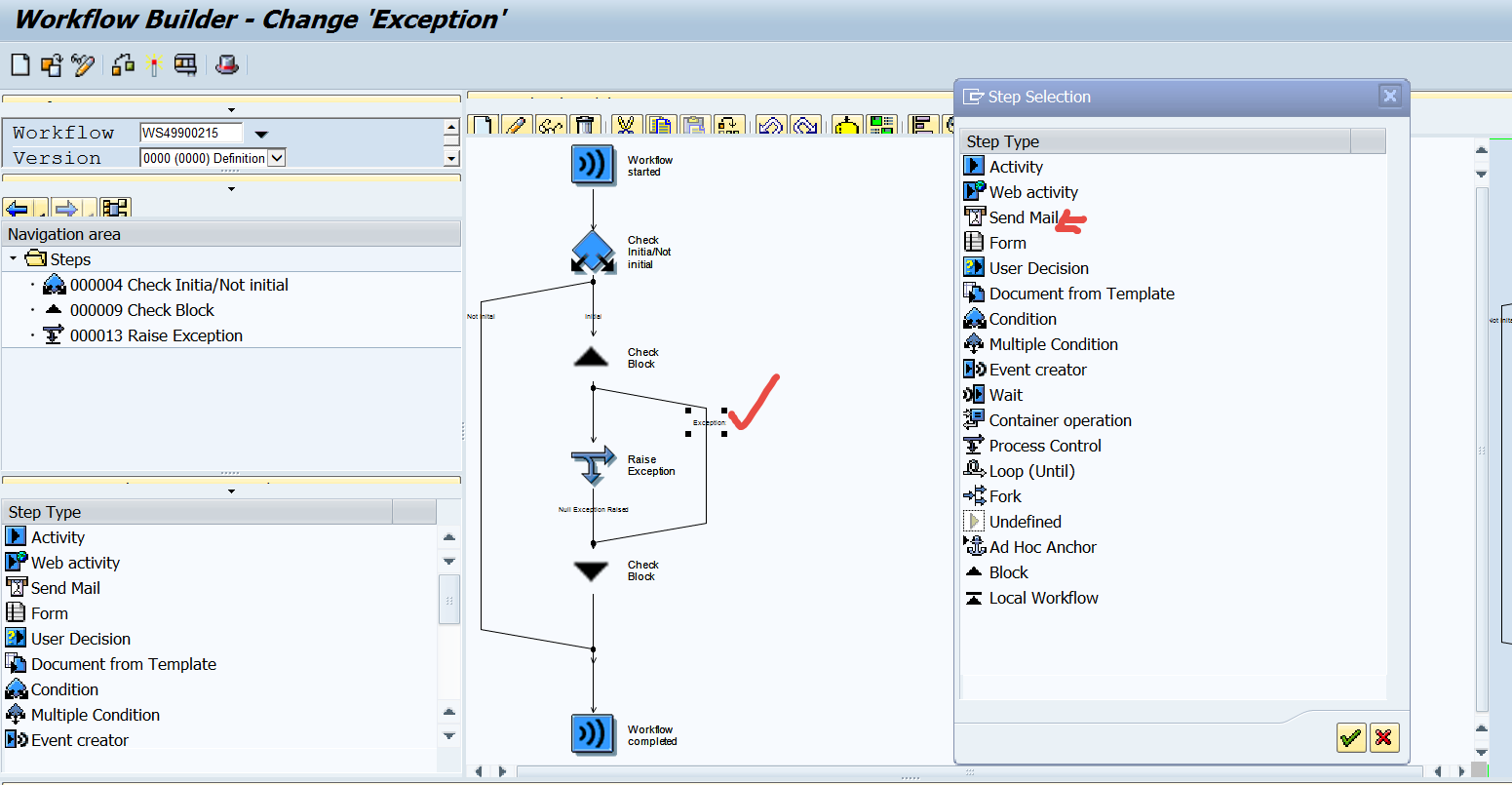 - To know about the exception handled path, in the exception handled path as shown create a send mail step.