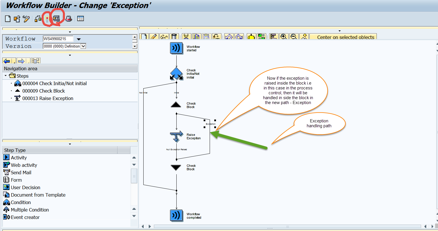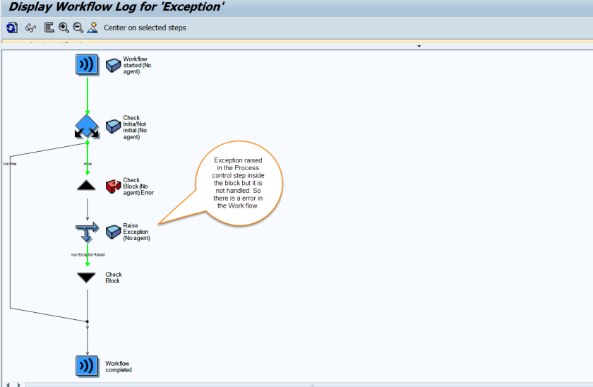 - Here is the way how the exception is handled when the exception is raised in the process control step inside the block step.