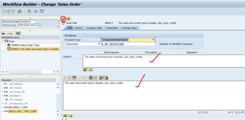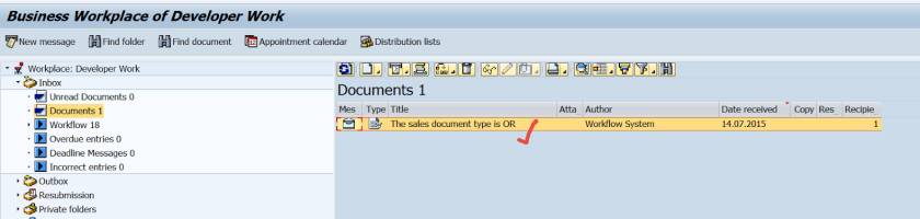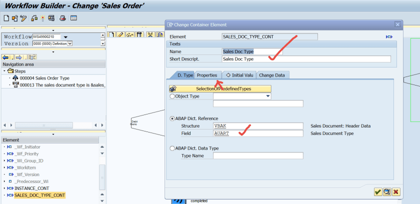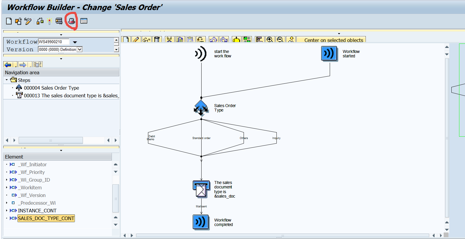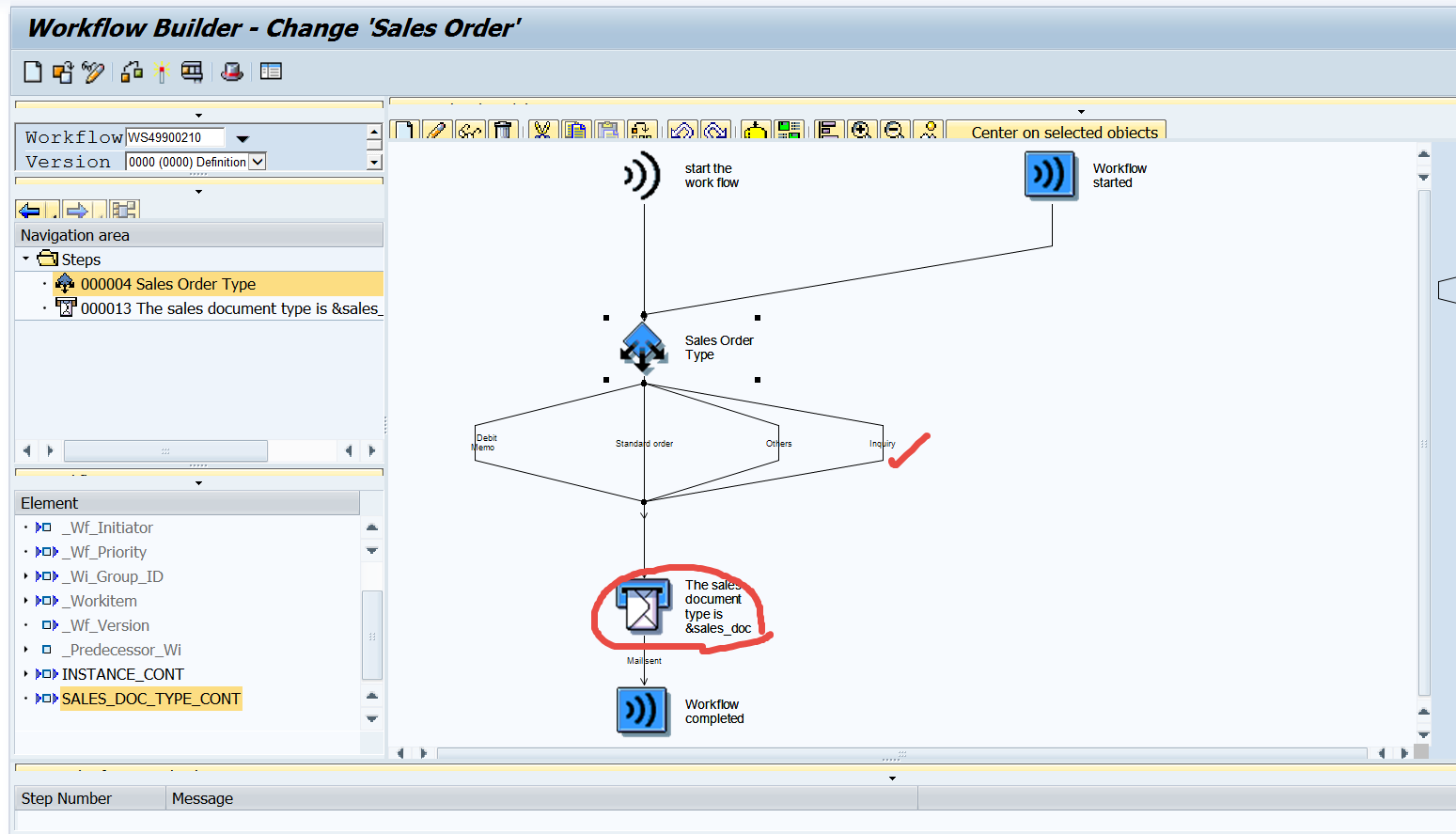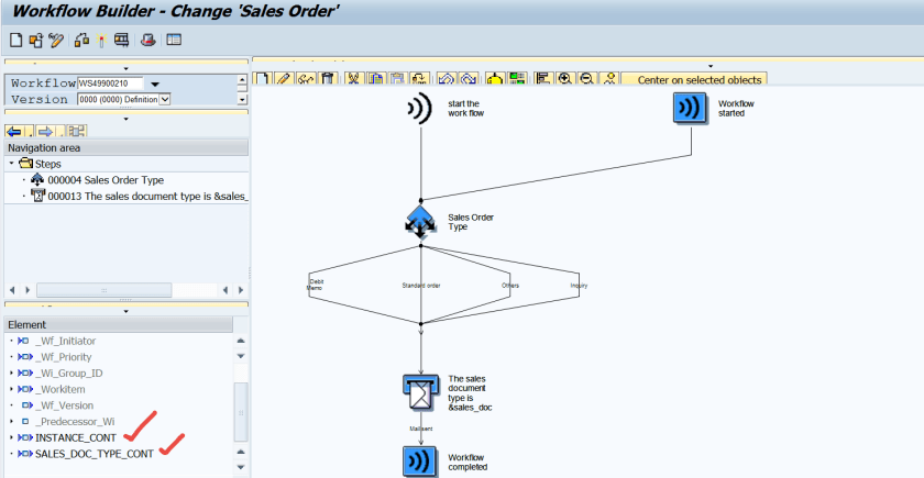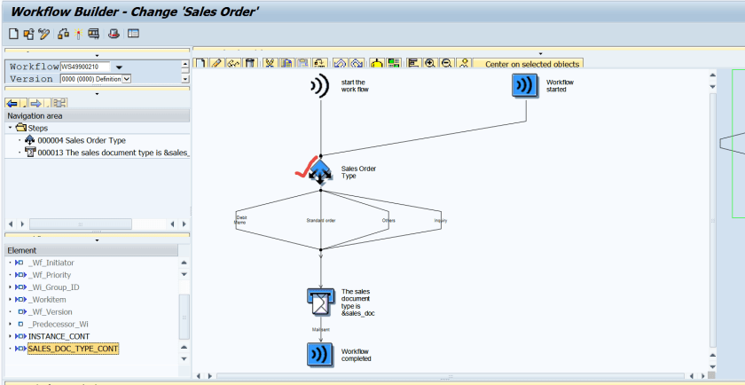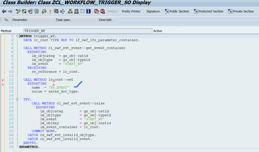 Put the below code which triggers the work flow and passes the sales doc type to the work flow.