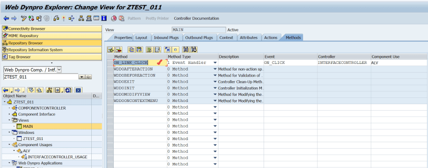 In the view Methods, add a new event handler view for the event ON_CLICK. which can be obtained form the F4 help.