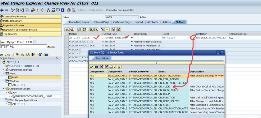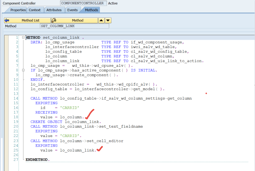 To set LINK TO ACTION to a filed, create a new method like SET_COLUMN_LINK’ in the component controller methods.