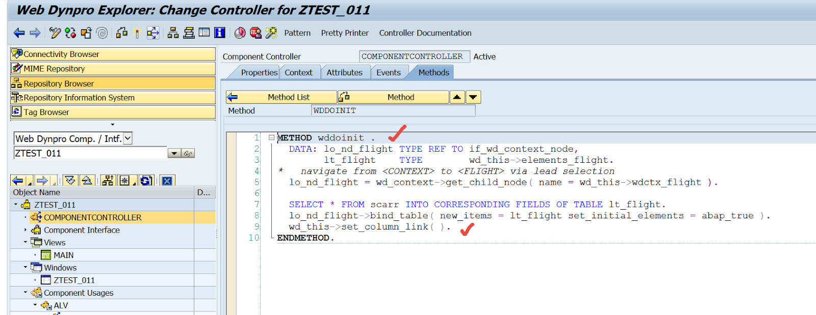 Go to the MINA view and add the used component.