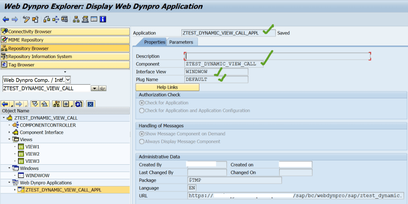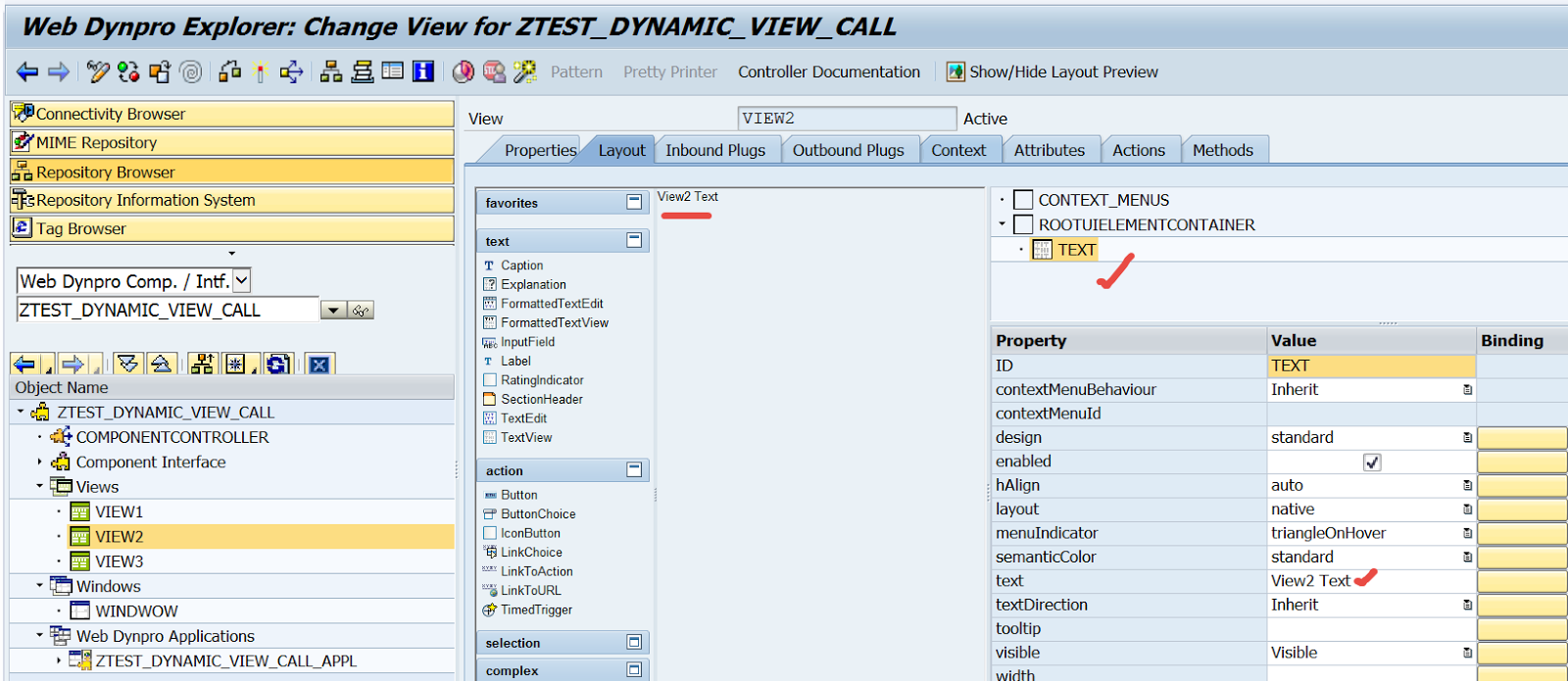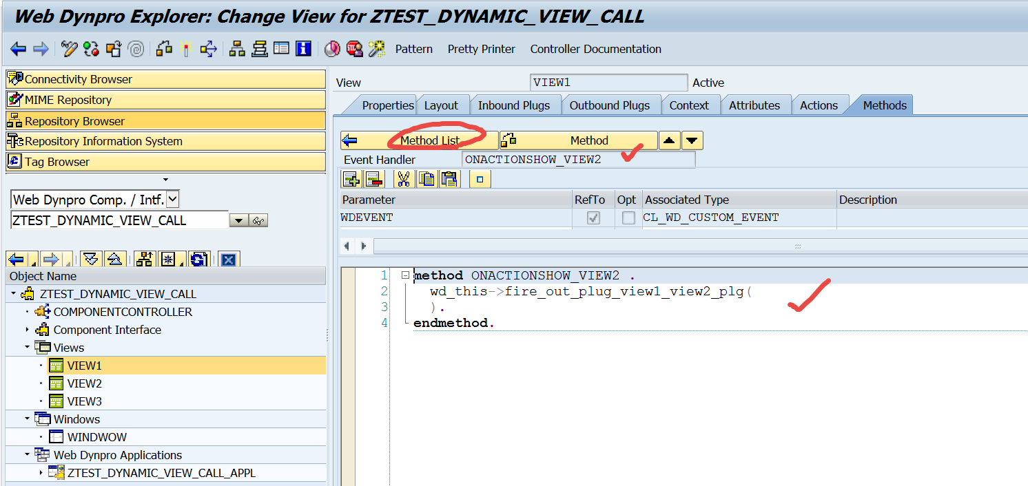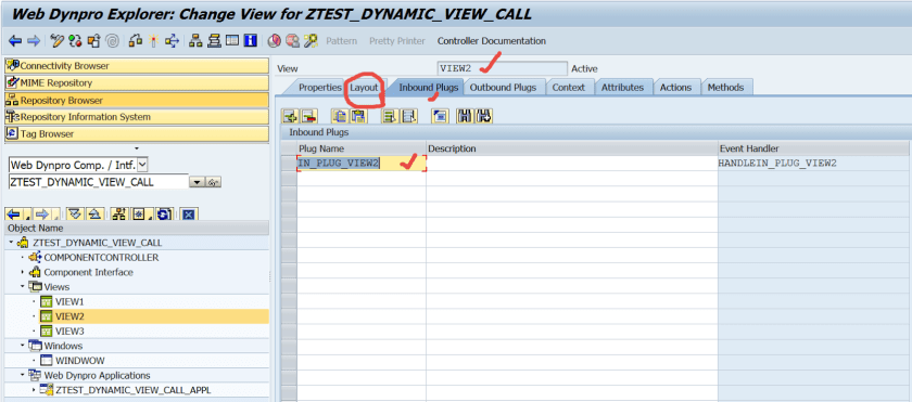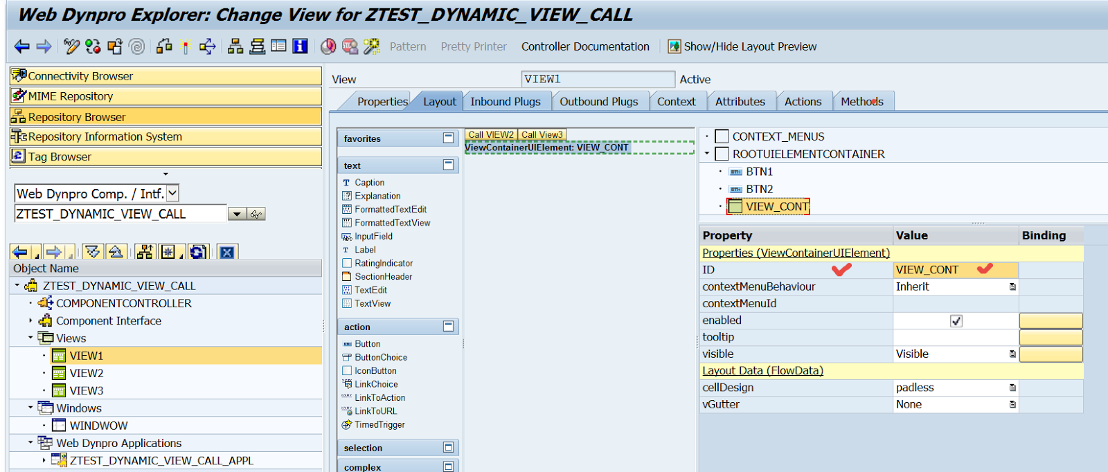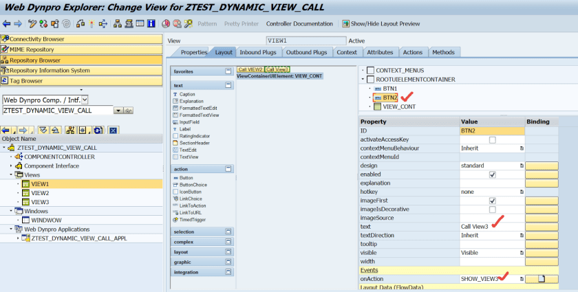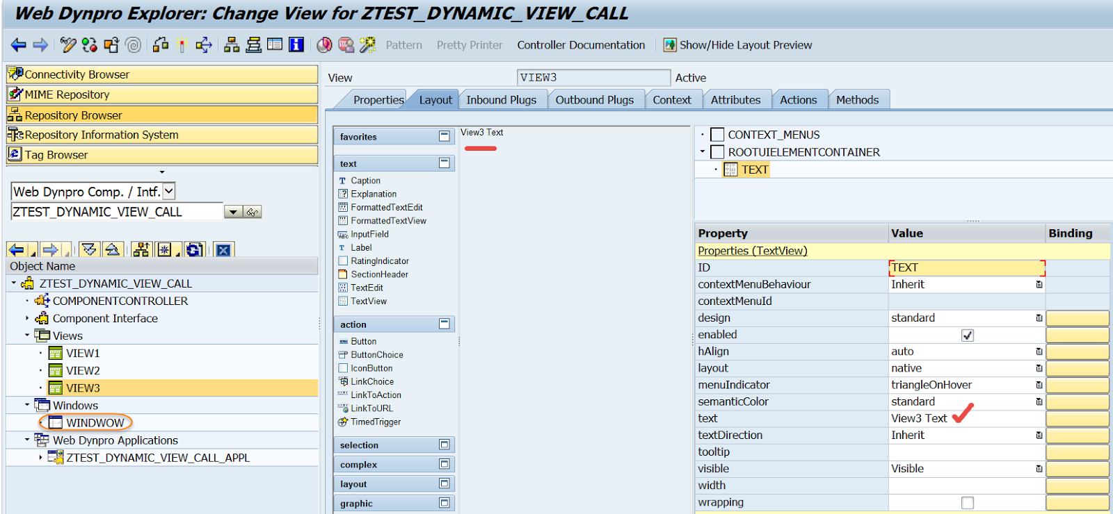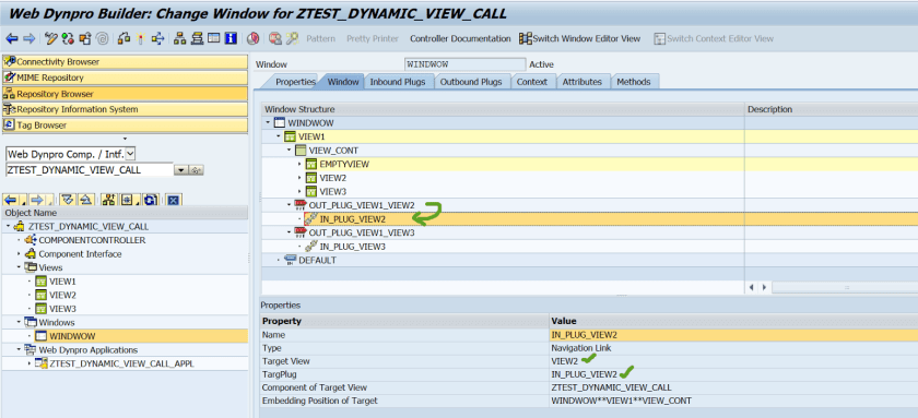 Create a web dynpro component with a window and three views as VIEW1, VIEW2 & VIEW3.