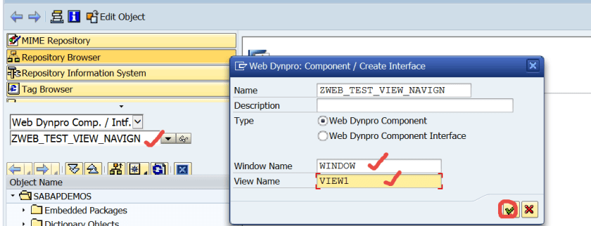 Step1. Go to Tx- SE80 and create a web dynpro component with the window name and view name.