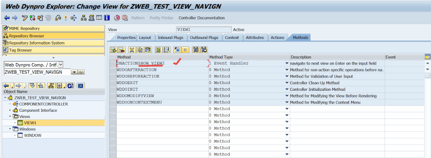 Step12. Go to the methods tab and open the action handler method.