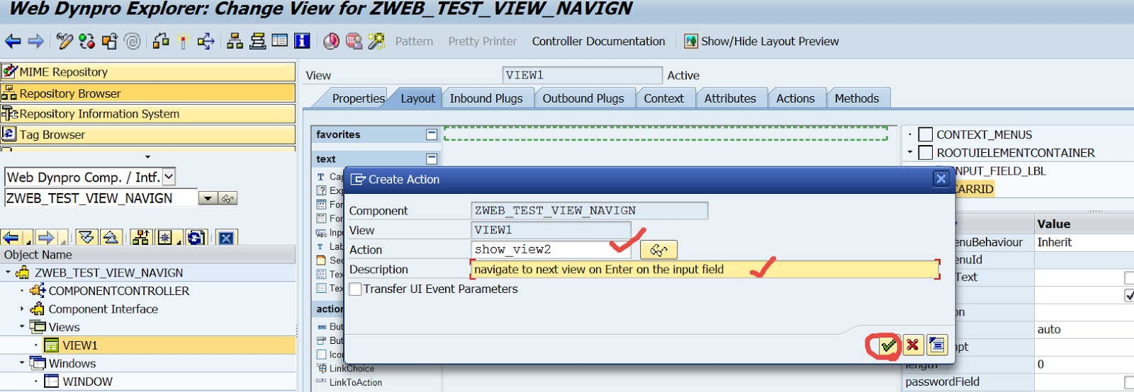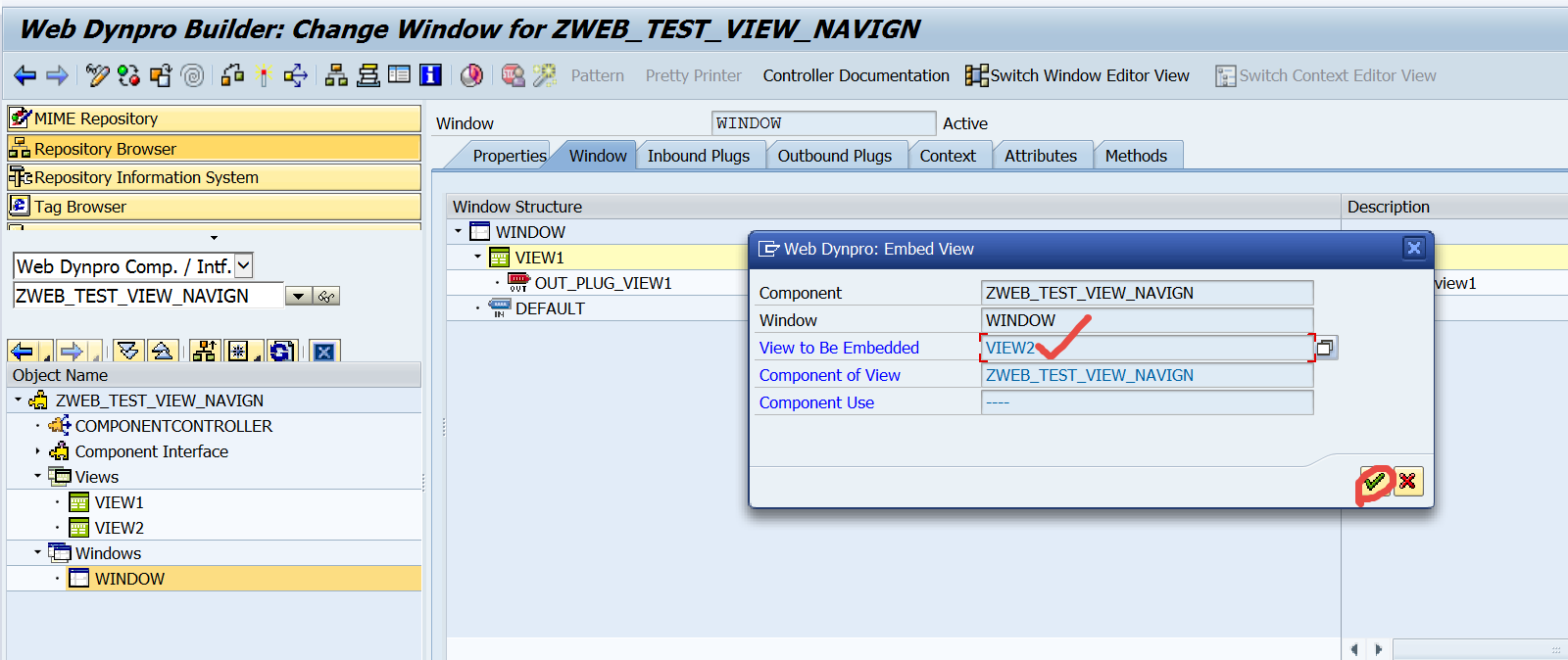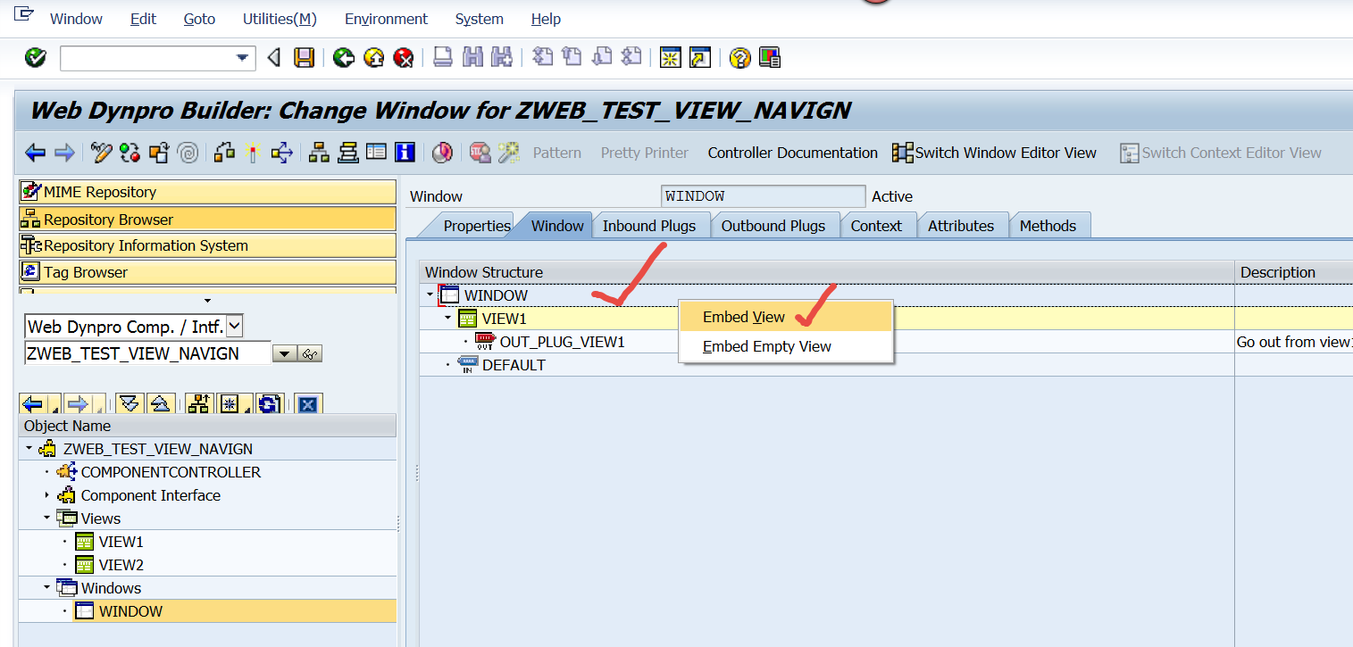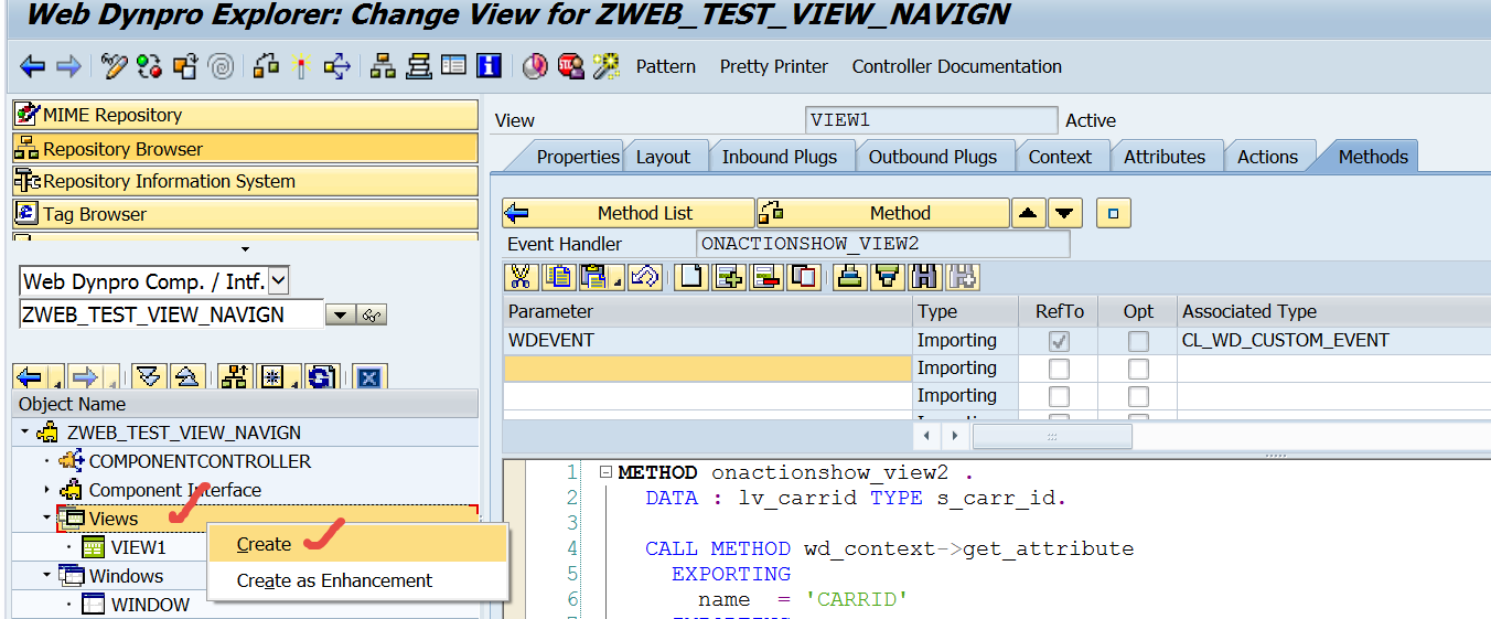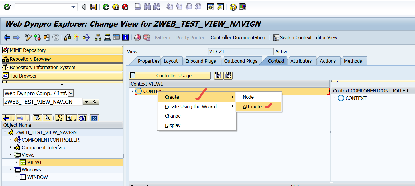 Step1. Go to Tx- SE80 and create a web dynpro component with the window name and view name.