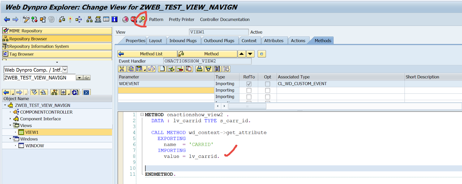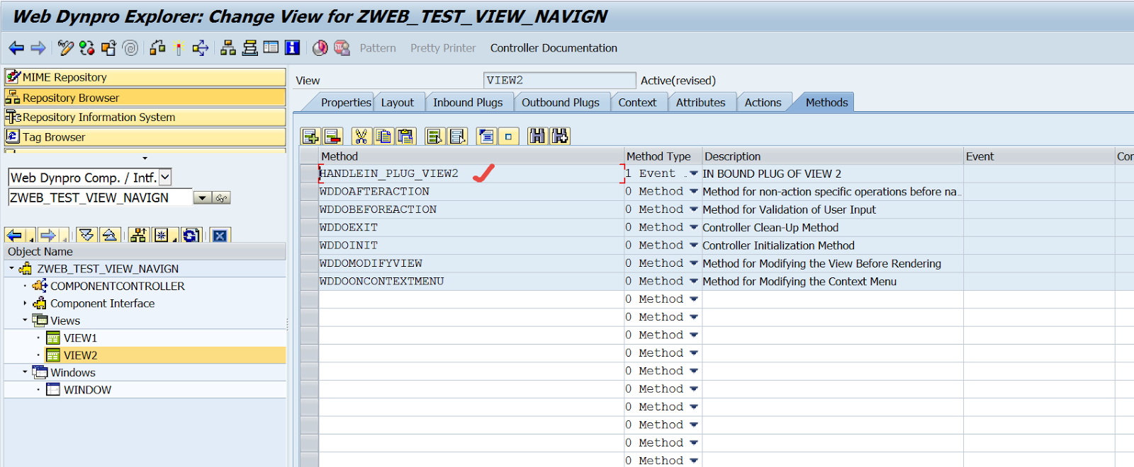 Step12. Go to the methods tab and open the action handler method.