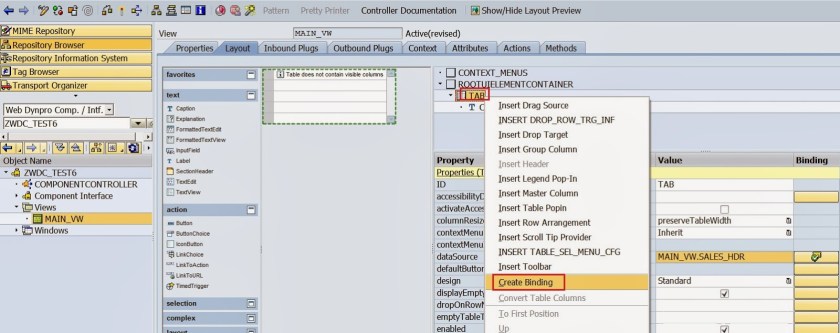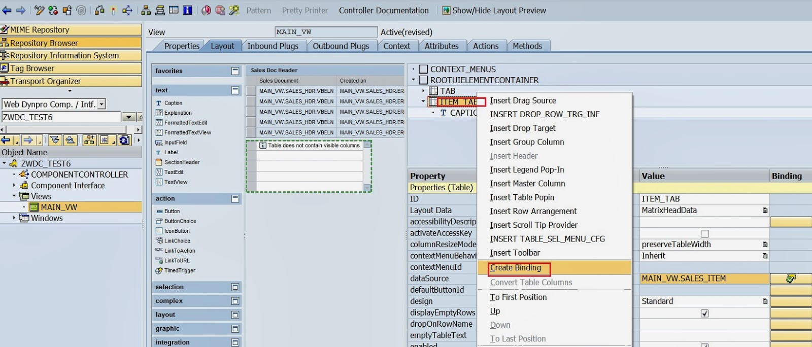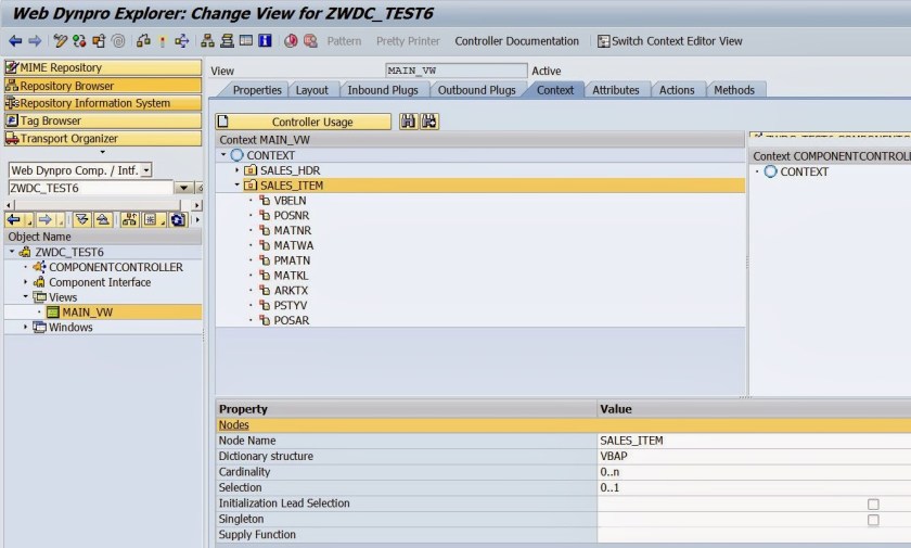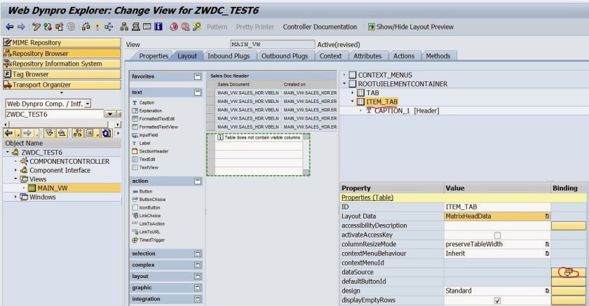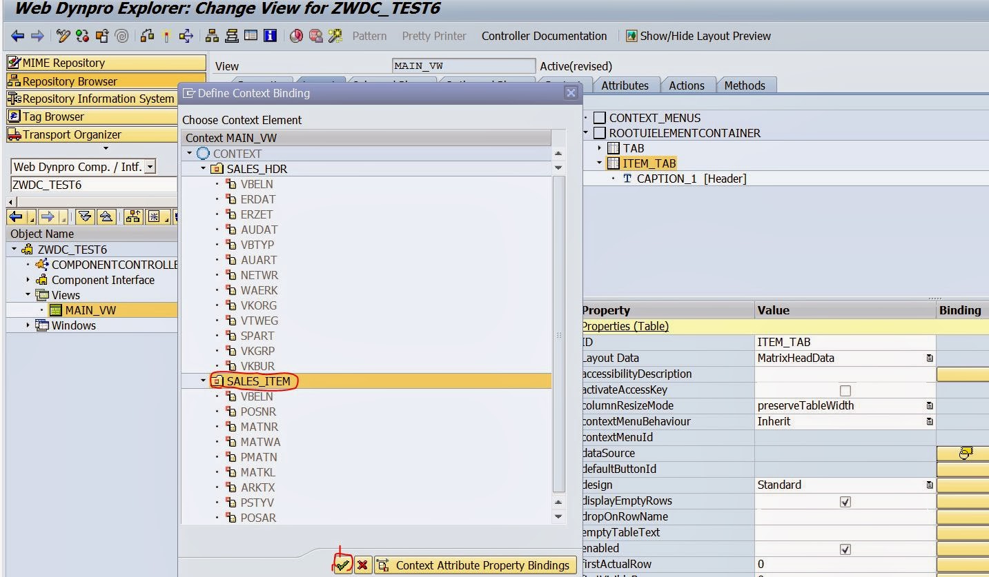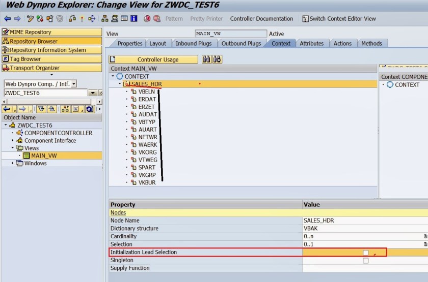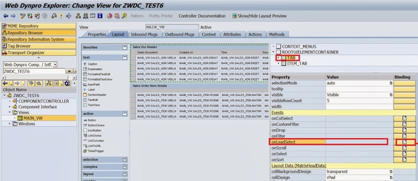 Scenario: This post is about creating two tables in a single view . One is header table and one is item table. The header table displays the sales order details and when the user selects any line in the header table the corresponding line items are displayed in the item table. The line selection in the header table uses lead selection event which triggers an action and the action handler method fills the item details in the item table.