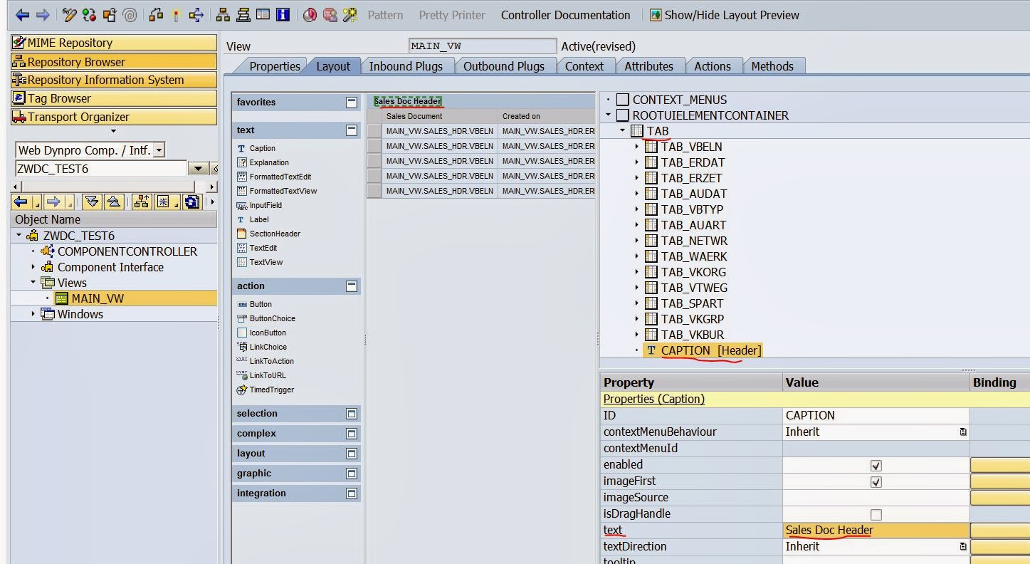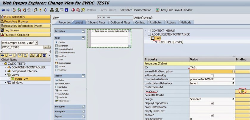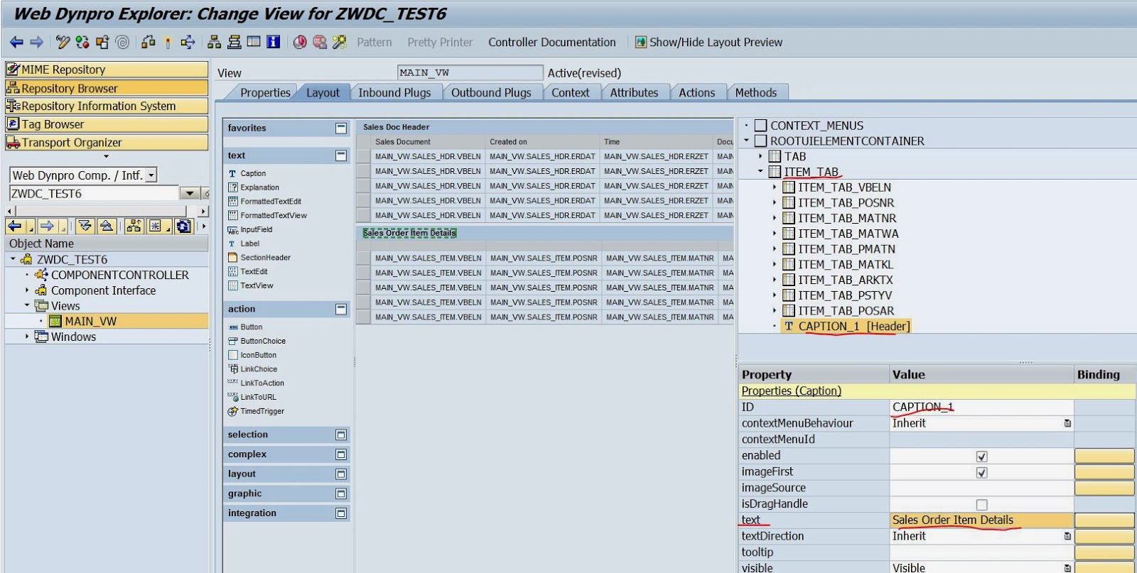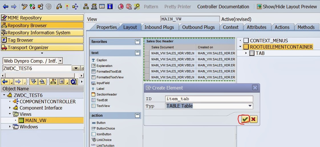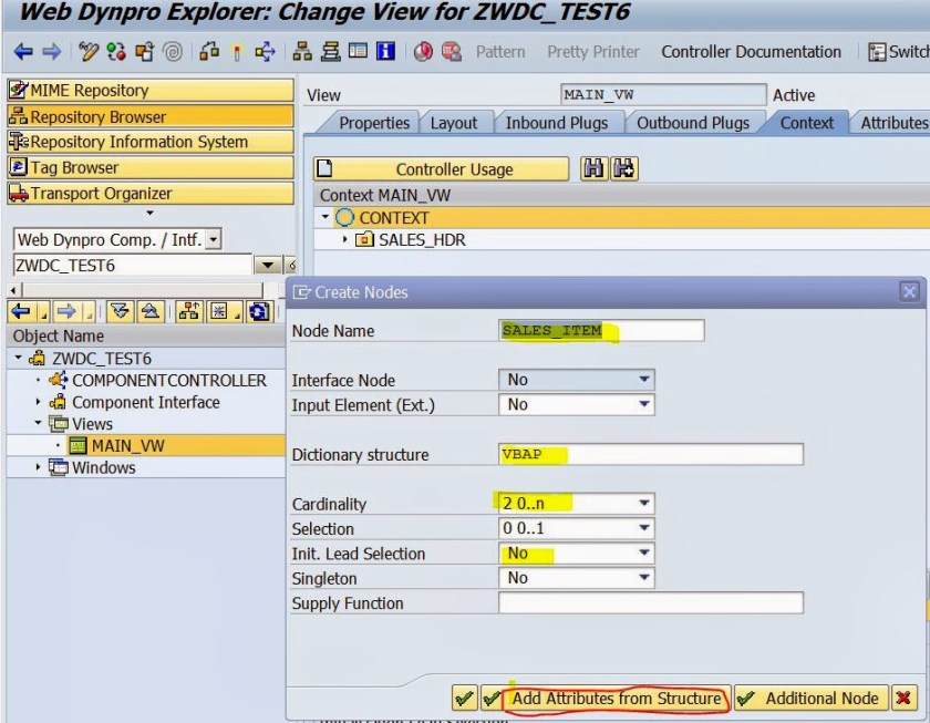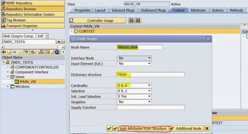 Scenario: This post is about creating two tables in a single view . One is header table and one is item table. The header table displays the sales order details and when the user selects any line in the header table the corresponding line items are displayed in the item table. The line selection in the header table uses lead selection event which triggers an action and the action handler method fills the item details in the item table.