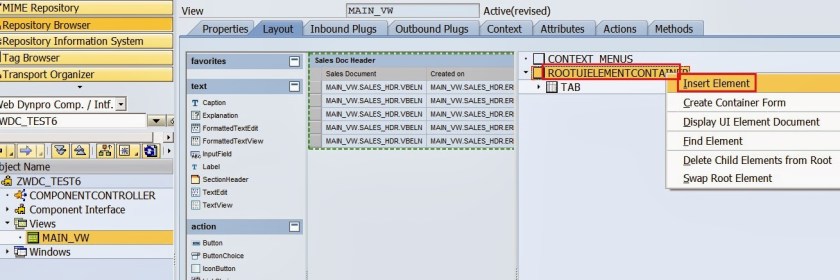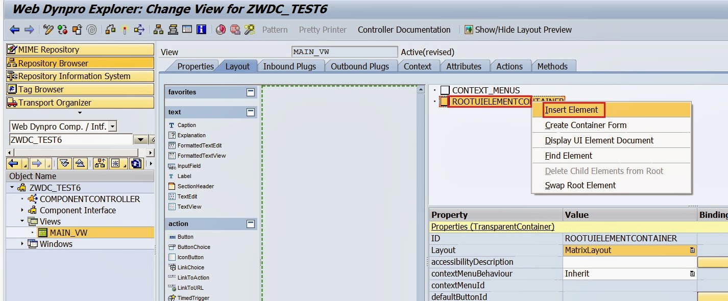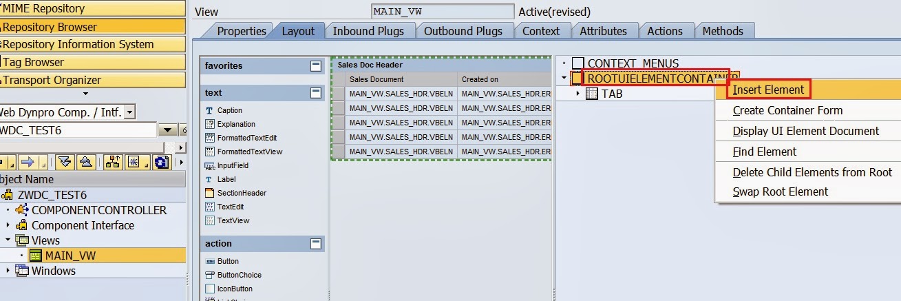 Step13. right click on the ROOTUIELEMENTCONTAINER and click on Insert Element option.