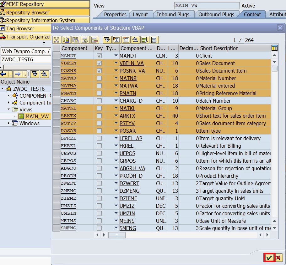 Step9. provide the details and click on the button to select some fields from the structure vbap.